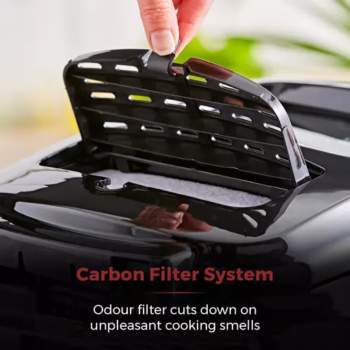 Built-in filter prevents cooking smells being released from food as you fry, keeping your kitchen odour-free