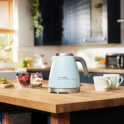 This 3000W retro style kettle has a detachable and washable limescale filter to keep it working at its best. Its 1.7L capacity makes making hot drinks quick and easy. Includes an easy to read water level indicator and removable lid for better access when filling with water and cleaning. The easy pour spout means less spillages and mess whilst the boil dry protection prevents damage.