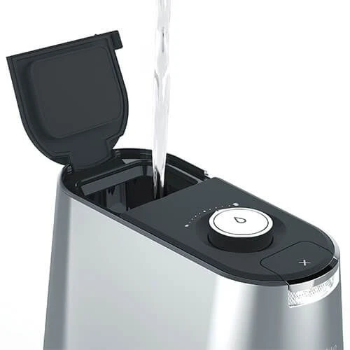 A hinged lid provides access to the 2 litre water tank that houses the permanent limescale filter.