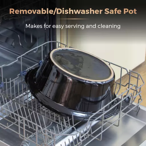 | Easy to use dial and power indicator light | Easy clean dishwasher safe pot |