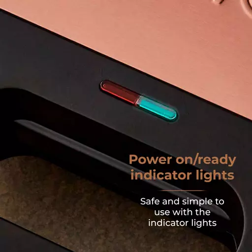 From ham and cheese to chocolate and strawberries, this sandwich maker is an absolute essential to your cooking needs. Tower has brilliantly designed it with deep fill ridge plates, giving you more room to pack in your favourite ingredients whilst the ridged edge seals them inside your sarnie. The non-stick coated plates help with removing the sandwich without leaving any residue behind and is simple to clean with a quick wipe. Furthermore, the non-stick coating promotes healthier eating options, requiring no oil or butter for flawless cooking every time. Power on and Ready-to-Go indicator lights means there is minimal guesswork as to when your sandwich is cooked whilst the automatic temperature controls allows evenly distributed heat for consistent cooking after each use. Its compact design in pink with rose gold accents, can easily be tidied away to keep your countertops clear.