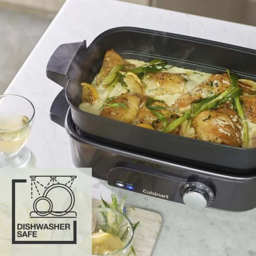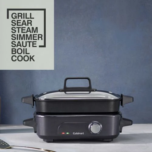 The Cuisinart Cook In enables you to quickly and easily prepare the home cooked meals you want, from scratch. It’s neither a slow cooker or a fast cooker but it is a griddle, hob, steamer and pan in one. Easy to use and easy to clean, the Cuisinart Cook In is big enough for a big family meal, yet compact enough to prepare the perfect meal for one. Ideal for midweek meals when you’re in a rush or equally at home cooking for a relaxed weekend dinner with friends.