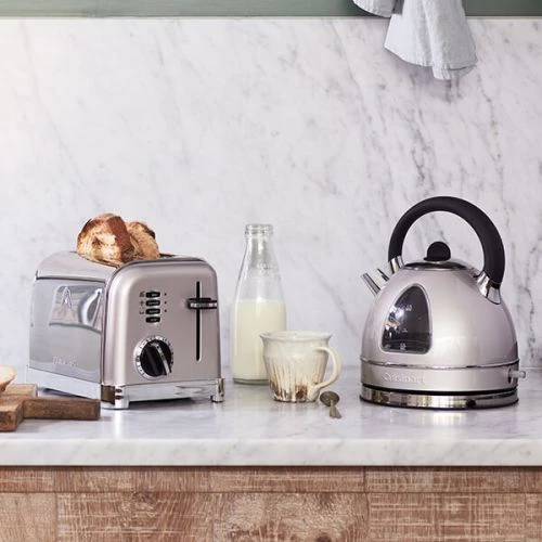 The Cuisinart Style Collection 2 Slice Toaster finished in Vintage Rose and stainless steel adds a subtle hint of colour to your kitchen. Extra large toasting slots have been designed to accommodate taller and thicker slices and are self centering for even browning whilst the 6 position dial lets you toast just the way you like it
