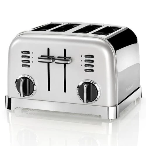 Other features of this Style Collection 4 Slice Toaster from Cuisinart include reheat, defrost and bagel functions; a cancel button to manually end the toasting cycle; high lift lever for the easy removal of smaller slices, crumpets and bagels; removable crumb tray.
