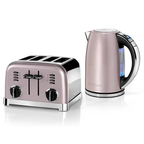 This Cuisinart Style Breakfast Set features the Cuisinart Style Collection Multi-Temp Jug Kettle (CPK17PIU) and the Cuisinart Style Collection 4 Slice Toaster (CPT180PU), both finished in stunning vintage rose with stainless steel accents.