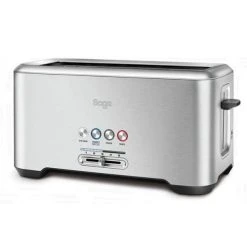 The Dualit Classic 4 slot Toaster is easy to use and has extra-wide (28mm) slots to accommodate all sizes of bread. With energy-efficient slot-selector control that allows you to select between providing heat to one, two or all four slots and a timer gives total control of your browning preferences. The high-lift mechanism allows you to easily remove smaller items, while the removable crumb tray keeps work surfaces clean. A patented adjustable rear foot provides stability while a patented thermal protection device protects from overheating.