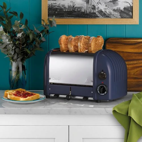 The Dualit Classic Vario AWS Lavender Blue 4 Slot Toaster is supplied with a Dualit 1-year and a 2-year guarantee on the ProHeat elements.