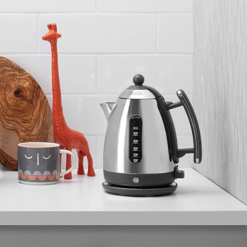 The kettle has a rapid boil feature with a concealed element and boil-dry safety feature.