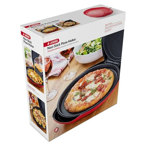 Easy to clean, the pizza maker features a PFOA free non-stick cooking surface and comes complete with a 2 year Judge electrical guarantee.
