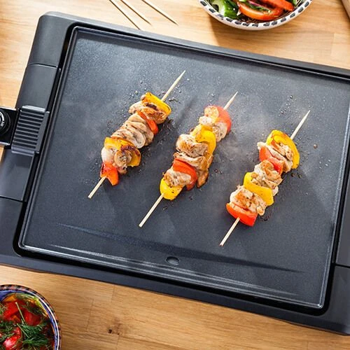The large 370mm x 250mm non-stick cooking surface can be removed for easy cleaning.