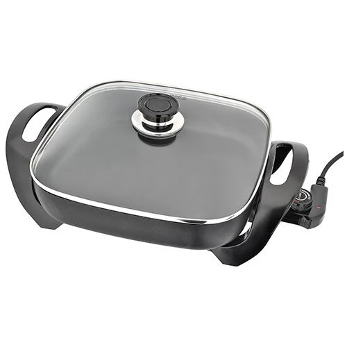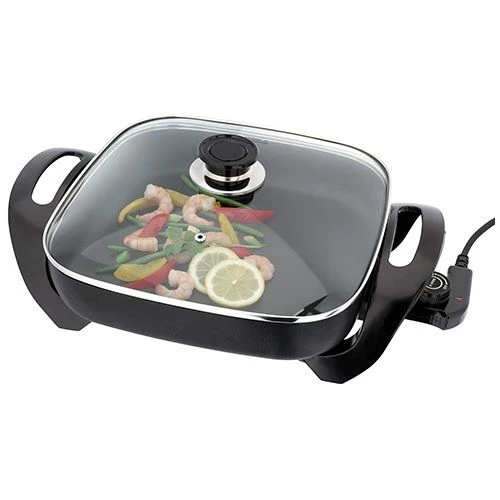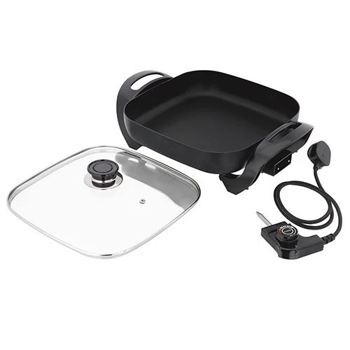 Regulated thermostat: Low for slow cooked casseroles and braising – or buffet warmer, a little higher for great vegetable and pilau dishes, more heat will make it into an oven – ideal for lasagne and shepherds pie, hotter still and it becomes a frying pan.