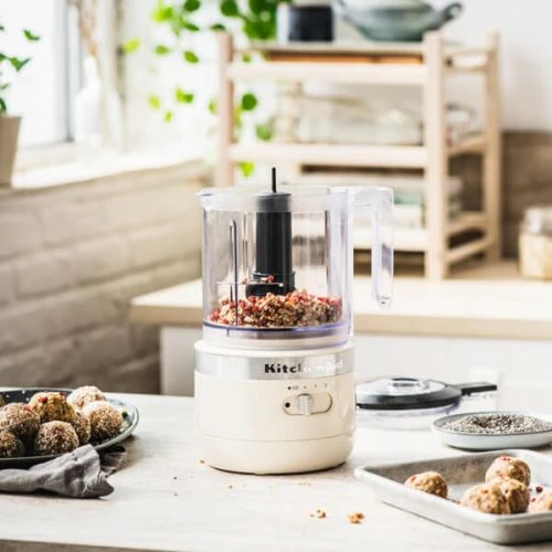 Unplug and unleash your creativity in the kitchen with the KitchenAid Almond Cream Cordless Food Chopper, no cord results in a clutter free countertop!