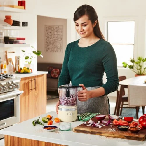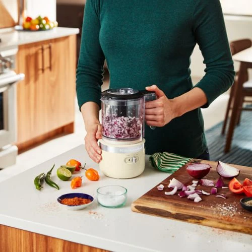 This KitchenAid Almond Cream Cordless Food Chopper, grants you all the power you expect from a food chopper, but without the cord.