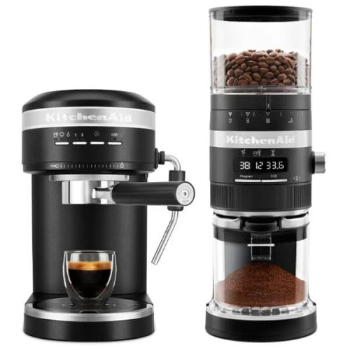 KitchenAid Artisan Semi-Auto Espresso Machine Cast Iron & Burr Grinder Set Matte Black