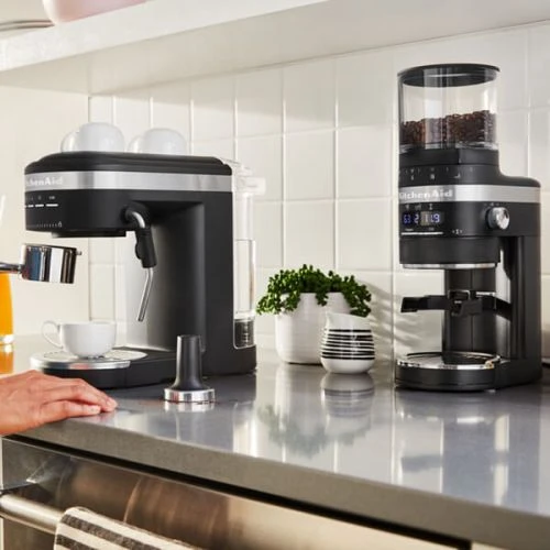 The Kitchenaid Burr Grinder makes the perfect partner to the Kitchenaid Artisan Semi-Auto Espresso Machine.