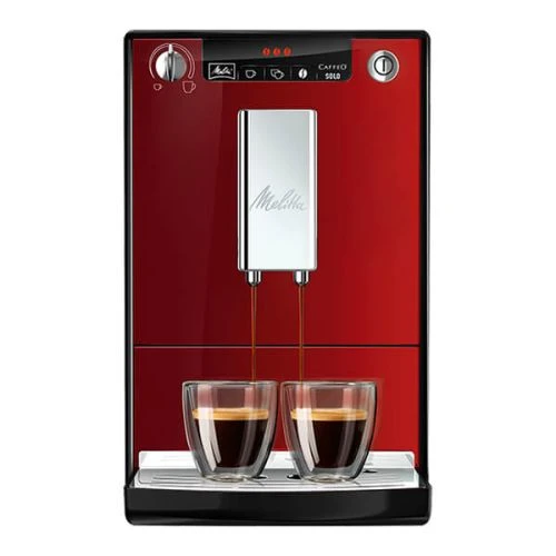 Introducing the Melitta Solo Chilli Red E950-204 Coffee Machine, a slim and fully automatic coffee machine designed to focus on the essentials, including pure coffee enjoyment with freshly ground coffee beans.