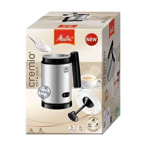 The stainless steel Melitta Cremio II milk frother has a 450W motor and illuminated operating buttons, with an auto switch off when the frothing is complete.