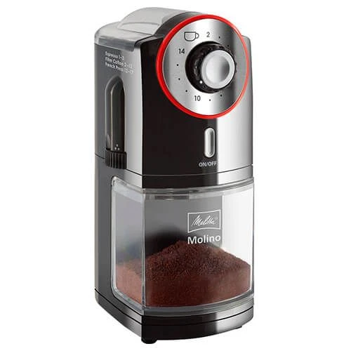 The Melitta Molino Electric Coffee Grinder will grind coffee beans for any type of coffee.