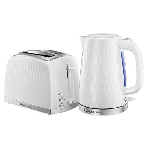 Russell Hobbs Honeycomb White Kettle & 2 Slice Toaster Set