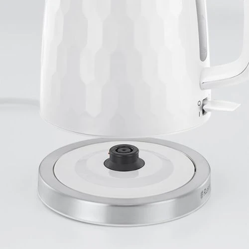 The Russell Hobbs Honeycomb Kettle in White brings a contemporary and stylish design to your kitchen.