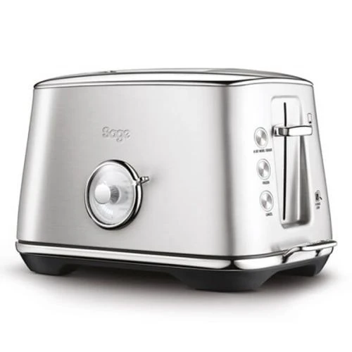 The Toast Select Luxe compact two slice toaster from Sage is made from brushed stainless steel with chrome accents. Extra wide and deep slots accommodate larger artisinal breads and thick bagels whilst six preset toast settings – white, brown, grain, fruit, rye and crumpet – adjust the toasting time accordingly.