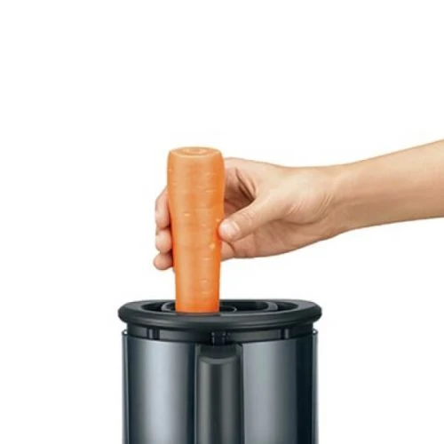 The extra-wide feed chute allows you to put larger or longer food in, and it comes with an accessory box where you can safely store all the stainless steel blades and discs.
