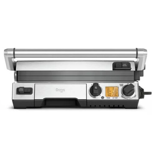 Fully adjustable height and tilt – accommodates a vast range of thicknesses of meat and adjustable tilt for perfect fat drain-off or perfectly flat for grilling eggs, pancakes and toast.