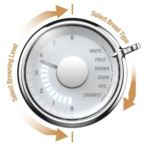 The Toast Select Luxe features two one-of-a-kind dedicated buttons – ‘A Quick Look’ to check on toasting progress and ‘A Bit More’ if your toast requires a little more toasting whilst an LED countdown indicator keeps you informed on toasting progress.