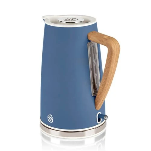 Add a touch of Scandi styling to your kitchen with the Swan Nordic Blue 1.7L Cordless Kettle. Modern, Nordic design and a wood effect handle create a sense of functional simplicity that is perfect for a minimalist kitchen.