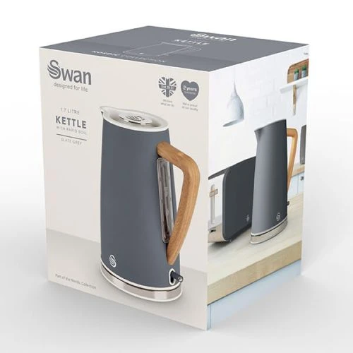 The Swan Nordic Slate Grey 1.7L Cordless Kettle is supplied with a 2 year manufacturer’s guarantee.