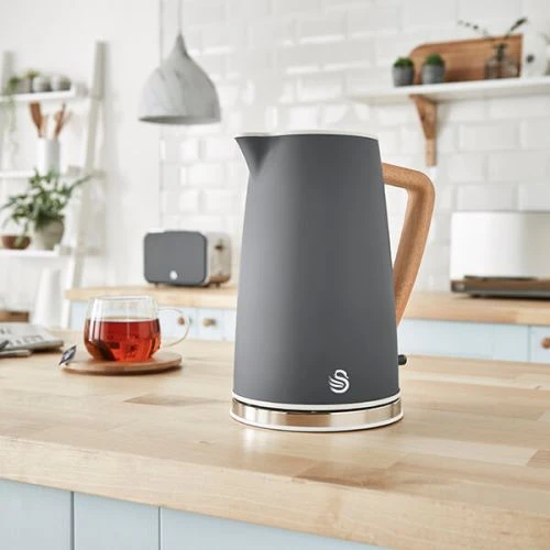 Add a touch of Scandi styling to your kitchen with the Swan Nordic Slate Grey 1.7L Cordless Kettle. Modern, Nordic design and a wood effect handle create a sense of functional simplicity that is perfect for a minimalist kitchen.