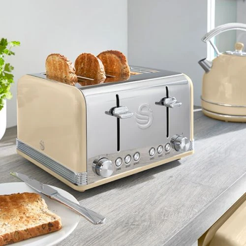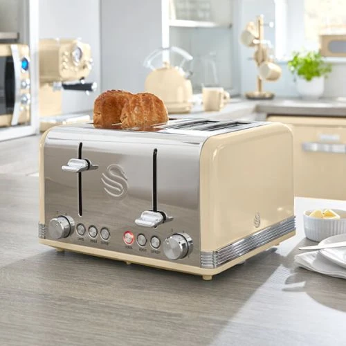 Add a touch of retro chic to your kitchen with the Swan Retro Cream 4 Slice Toaster.