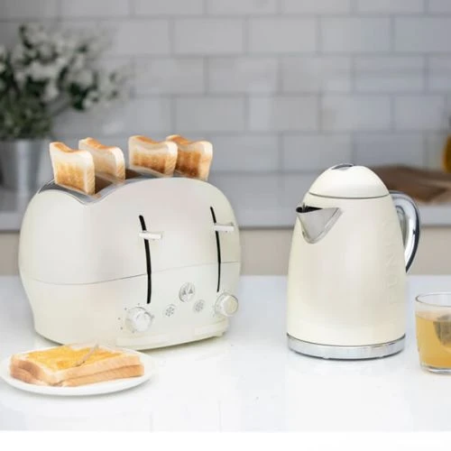 The Funky Appliance Company 1.7 Litre Kettle and 4 Slice Toaster Set Cream