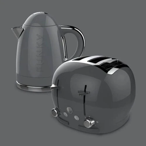This Funky Appliance kettle and toaster set from the Funky Appliance Company features the Funky Appliance 1.7L Kettle (FK01GREY) and the Funky Appliance 4 Slice Toaster (FT01GREY), both finished in fabulous Grey.