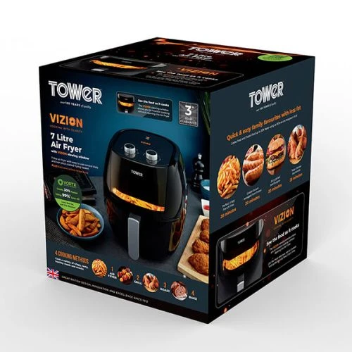 The Tower 7 Litre Vizion Air Fryer is supplied with a standard 1 year manufacturer’s warranty which can be extended by an additional 2 years when you register the product online.