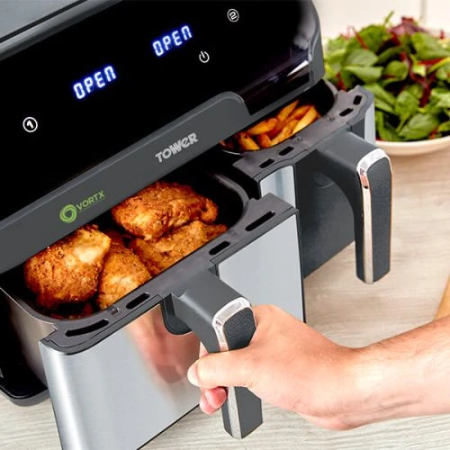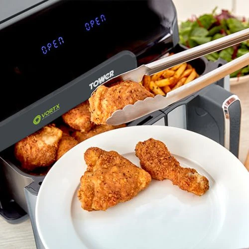 The Tower Air Fryer Vortx Eco Duo Basket uses Vortx technology that rapidly circulates hot air around the food to create succulent and flavoursome meals for all to enjoy. This Air Fryer cooks food up to 30% faster than a conventional oven, and saves up to 50% on your energy bill.