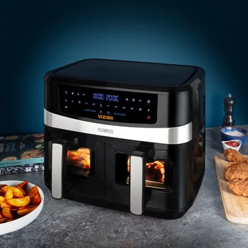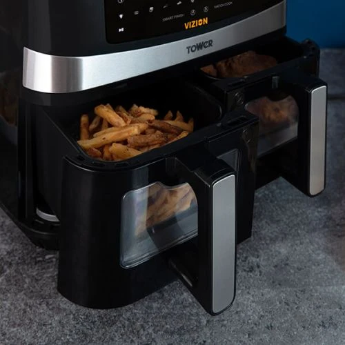 The Tower Air Fryer Vortx Vizion 9L Dual Basket uses Vortx technology that rapidly circulates hot air around the food to create succulent and flavoursome meals for all to enjoy. This Air Fryer cooks food up to 30% faster than a conventional oven, and saves up to 50% on your energy bill.