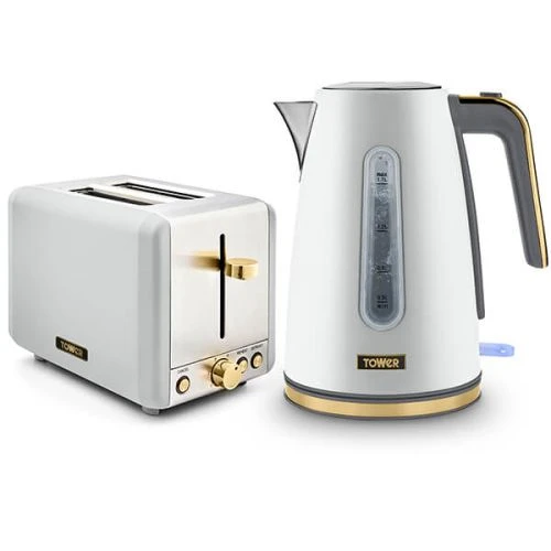 Tower Cavaletto Jug Kettle and 2 Slice Toaster Set Optic White