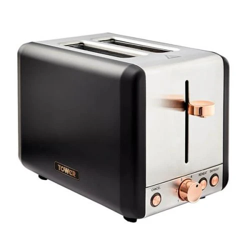 The Tower Cavaletto black 2 slice stainless steel toaster has a contemporary matt black finish with elegant rose gold accents adding style to your kitchen and fits in with the coordinating Cavaletto range (sold seperately).