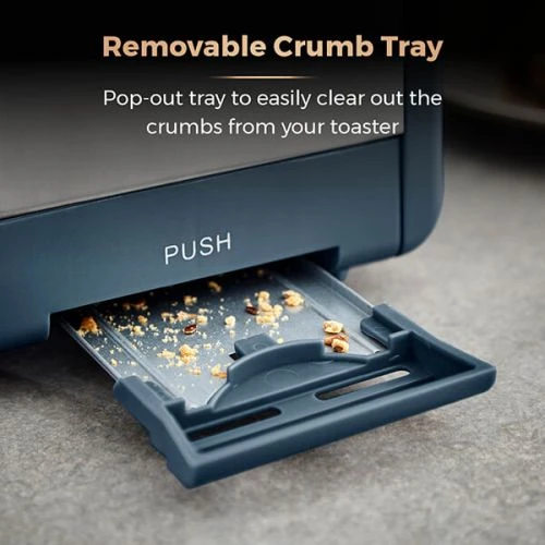 The removable crumb tray of the 2 slice toaster makes it easy to keep the toaster well maintained and free of crumbs. The toaster includes convenient cord storage for keeping your countertop clear of trailing wires.