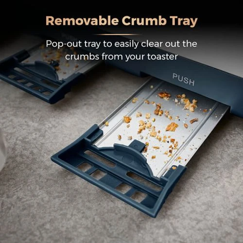 The removable crumb tray of the 4 slice toaster makes it easy to keep the toaster well maintained and free of crumbs. The toaster includes convenient cord storage for keeping your countertop clear of trailing wires.