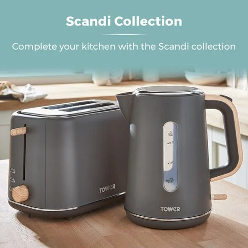Add a touch of Nordic minimalism to your kitchen with the Tower Scandi Kettle and Toaster Set. Finished in stylish matt grey with wood effect accents, this attractive kettle & toaster set will sit effortlessly with any style of kitchen decor – from classic to modern.