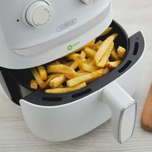 The Tower Vortx 3.8 Litre Manual White Air Fryer is ideal for making delicious family meals 30% faster for oil free cooking and healthier food with the exclusive Vortex technology.