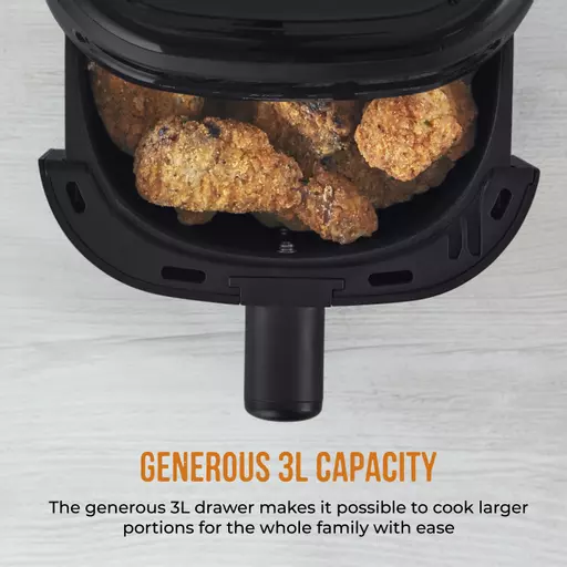 The generous 3L drawer makes it possible to cook for an entire family in one go, or even just cook larger portions, including whole meat joints. Â