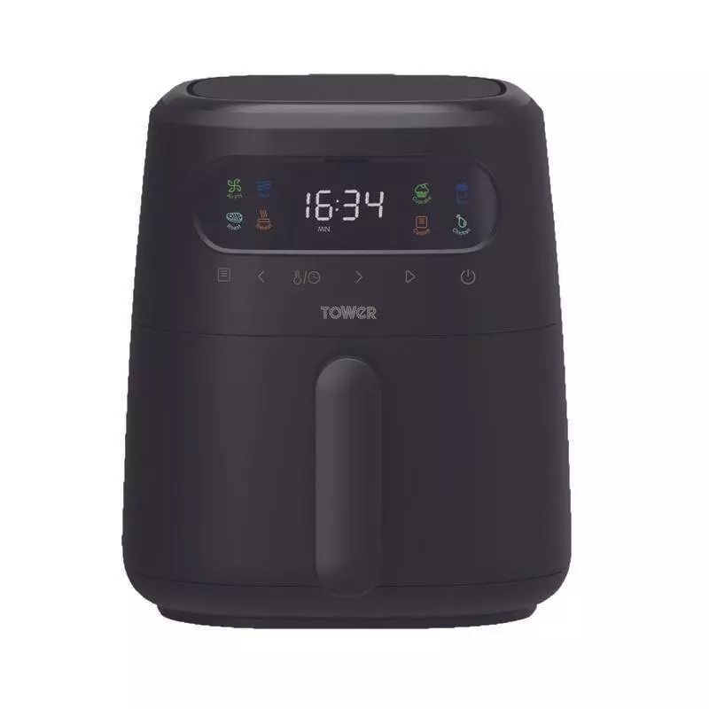 Exclusive to Tower Air Fryers, Vortx technology rapidly circulates hot air around food. Cooking up to 30% faster than a conventional oven and using 99% less oil, saving up to 70% on your energy. The colour display. A clear, easy to read coloured display ensures simple and efficient cooking, with different coloured icons to help choose between the different cooking pre-sets. Choose from 7 one-touch pre-sets to take the guesswork out of cooking, including Air Fry, Bake, Cupcake, Fries, Roast, Chicken & Roast.  Become a star baker creating cakes, tarts or pies with the bake function or grill juicy steaks like a pro with the crisper grill plate. The generous 3L capacity is perfect for cooking family sized meals and can even comfortably accommodate a whole meat joint. Â