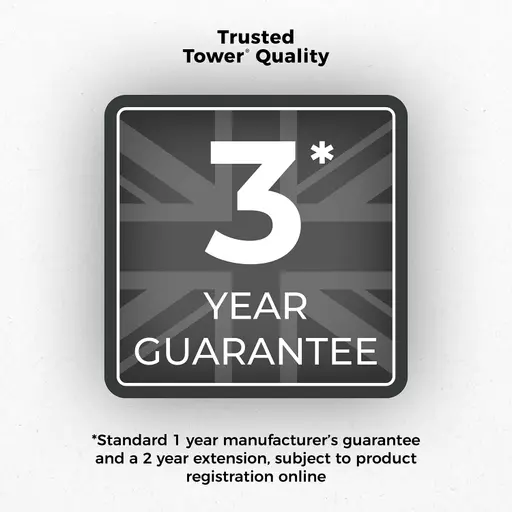 Trusted Tower quality with a standard 1 year guarantee and optional 2 year extension, subject to product registration online