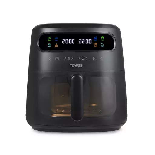 Exclusive to Tower Air Fryers, Vortx technology rapidly circulates hot air around food. Cooking up to 30% faster than a conventional oven and using 99% less oil, saving up to 70% on your energy. The colour display. A clear, easy to read coloured display ensures simple and efficient cooking, with different coloured icons to help choose between the different cooking pre-sets. The Vizion viewing window is built into the front of the drawer, allowing you to monitor progress without having to interrupt the cooking process. Choose from 7 one-touch pre-sets to take the guesswork out of cooking, including Air Fry, Bake, Cupcake, Fries, Roast, Chicken & Reheat. Become a star baker creating cakes, tarts or pies with the bake function or grill juicy steaks like a pro with the crisper grill plate. The generous 7.5L capacity is perfect for cooking family sized meals and can even comfortably accommodate a whole meat joint.