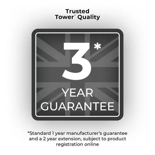 Trusted Tower quality with a standard 1 year guarantee and optional 2 year extension, subject to product registration online